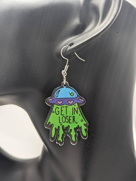Alien earrings, alien jewelry, gifts for alien lovers, UFO earrings, UFO jewelry, alien believers, gothic earrings, statement earrings