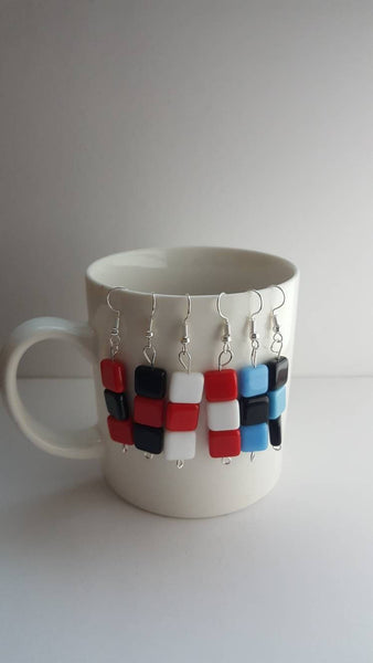 Asymmetrical earrings, mismatched earrings, gifts for her, 80s earrings, art deco earrings, 80s jewelry, square earrings, handmade earrings