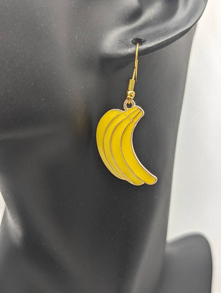 Banana earrings, fruit earrings, fruit lover gifts, gifts for vegans, fruit jewelry, kawaii earrings, kawaii jewelry, foodie gifts, healthy