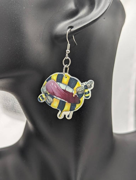 Bee earrings, bee jewelry, bee lover gifts, lip earrings, statement jewellery, kawaii earrings, kawaii jewelry, retro earrings, retro gifts,