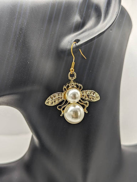 Bee earrings, pearl earrings, wasp earrings, big earrings, insect jewelry, insect earrings, honey bee inspired, bee keeper gifts, bee gifts