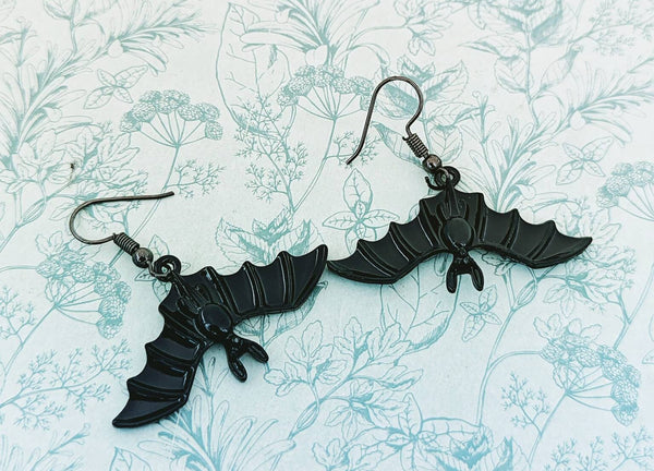 Black bat earrings, bat jewellery, bat lover gifts, vampire earrings, Halloween jewelry, Halloween earrings, vampire inspired gifts,