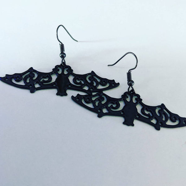 Black bat earrings, dangle big bat earrings, Halloween gothic earrings, gothic bat jewellery, gothic style earrings, horror lover gifts,