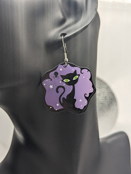 Black cat earrings, Halloween earrings, Halloween jewellery, Halloween lover gifts, black cat jewelry, gothic earrings, gifts for cat lovers