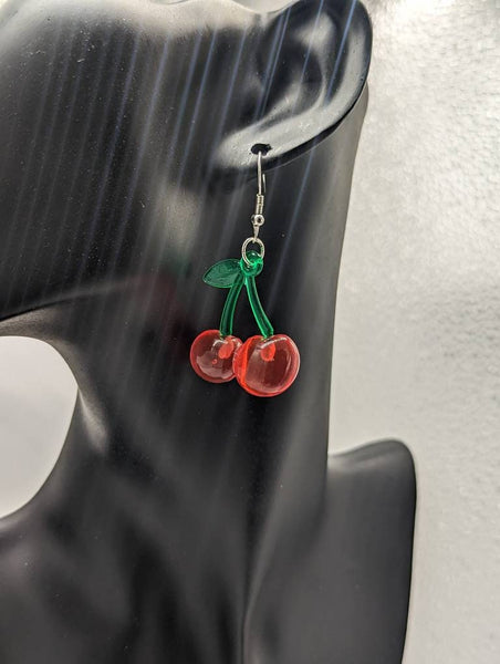 Cherry earrings, cherry jewellery, cherry lover gifts, rockabilly earrings, kawaii jewelry, kawaii earrings, fun earrings, food earrings,