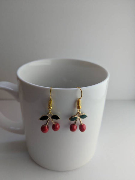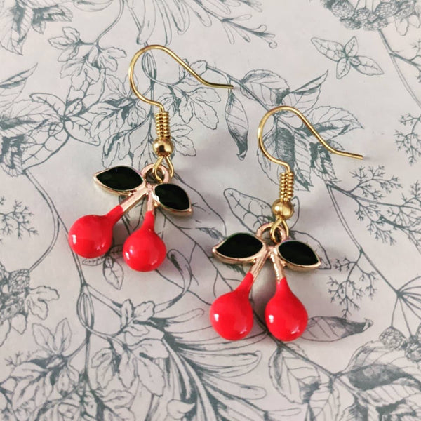 Cherry earrings, cherry jewellery, cherry retro earrings, fruit lover gifts, foodie earrings, vegan earrings, vegan gifts, retro jewelry