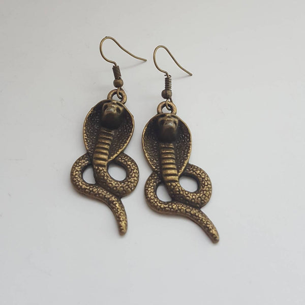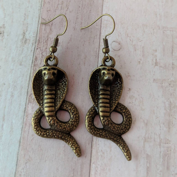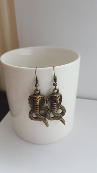 Cobra earrings, snake earrings, snake jewelry, bronze earrings, bronze jewelry, reptile earrings, reptile jewelry, animal earrings,