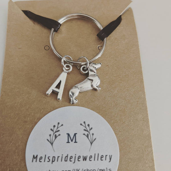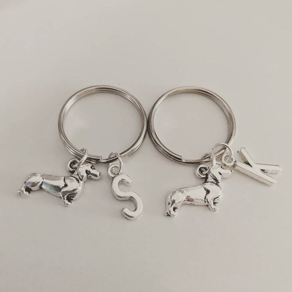 Daschund keyring, dog keychain, dog lover gifts, initial keychain, personalized keychain, bff gifts, animal keyring, animal lover gifts,