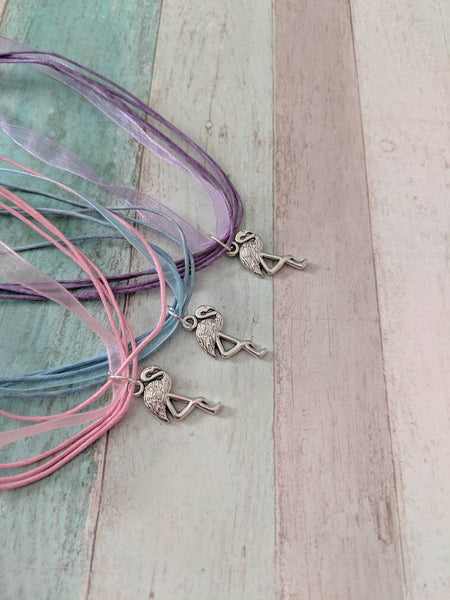 Flamingo necklace, flamingo jewellery, children necklace, children jewellery, party favours, animal charm, bird jewellery, little sister,