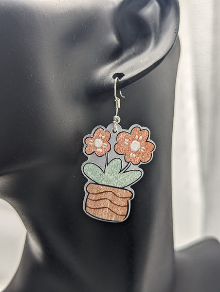 Flower earrings, plant lover gifts, plant earrings, mother day gifts, gifts for Gardener, Gardener earrings, gardener themed jewelry,