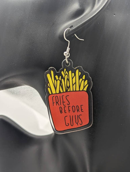 Fries before guys earrings, foodie earrings, foodie jewelry, food lover gifts, novelty earrings, novelty jewelry, quirky fun earrings,