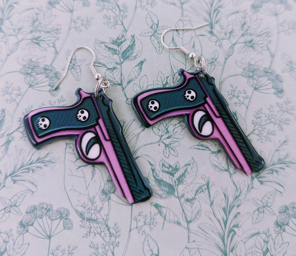 Gun earrings, statement earrings, statement jewelry, gun jewelry, big earrings, weapon jewelry, weapon earrings, kawaii jewelry, bff gifts