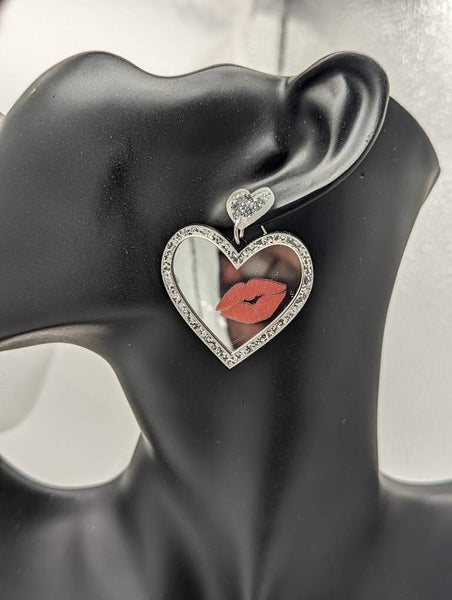 Mirrored heart earrings, statement earrings, kawaii jewelry, big earrings, heart jewelry, teen girl earrings, stud earrings, heart themed