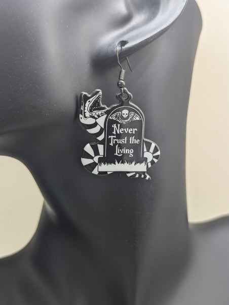 Novelty snake horror earrings, snake lover gifts, never trust the living, gothic earrings, gothic accessories, horror themed gifts,