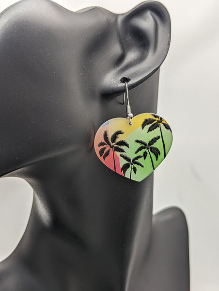 Palm tree earrings, flower earrings, heart jewelry, heart earrings, statement jewellery, Hawaii, summer earrings, summer accessories,
