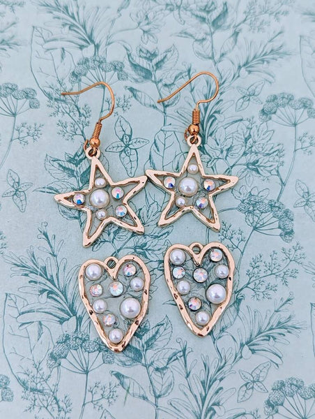Pearl heart earrings, star earrings, star jewelry, heart jewellery, pearl lover gifts, cute pearl earrings, beach accessories, summer gifts
