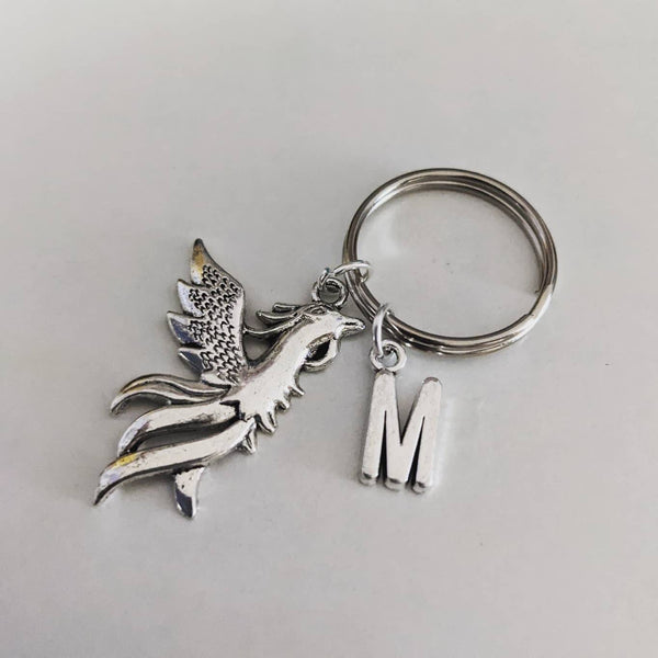 Phoenix keychain, phoenix keyring, phoenix gifts, bird keyring, bird gifts, sister gifts, fandom jewelry, bird keychain, initial keychain