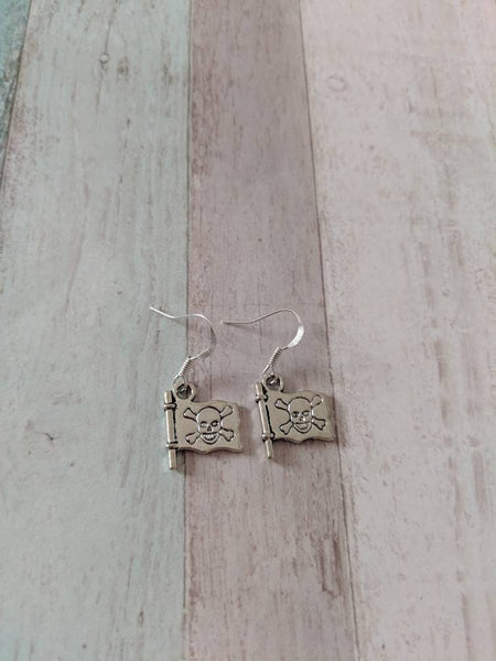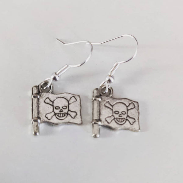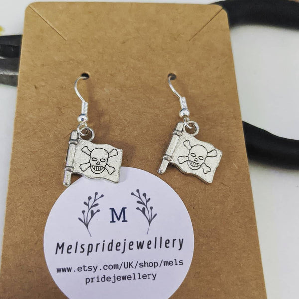 Pirate earrings, flag earrings, pirate jewelry, Halloween earrings, goth earrings, gothic earrings, rockabilly earrings, pirate gifts,