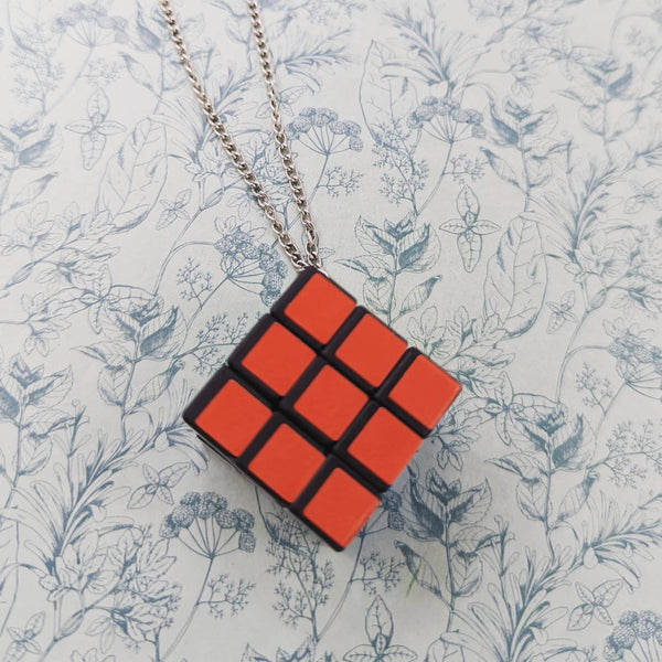 Rubik's cube necklace, gamer necklace, gamer jewellery, puzzle solver gifts, puzzle inspired gifts, puzzle lover gifts, statement necklace,
