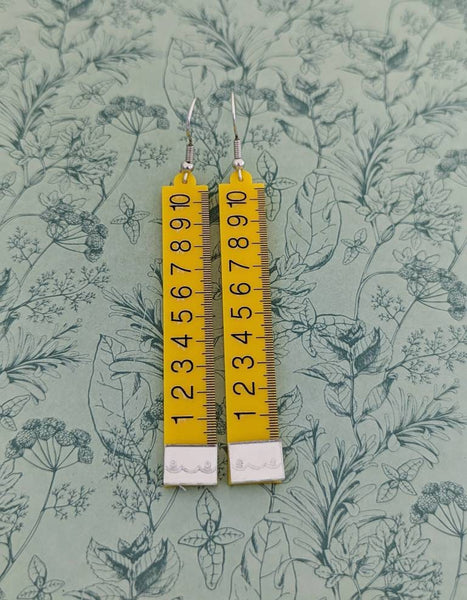 Ruler earrings, tape measure earrings, seamstress gifts, seamstress inspired, sewing inspired, sewing earrings, kitsch earrings, kitsch gift