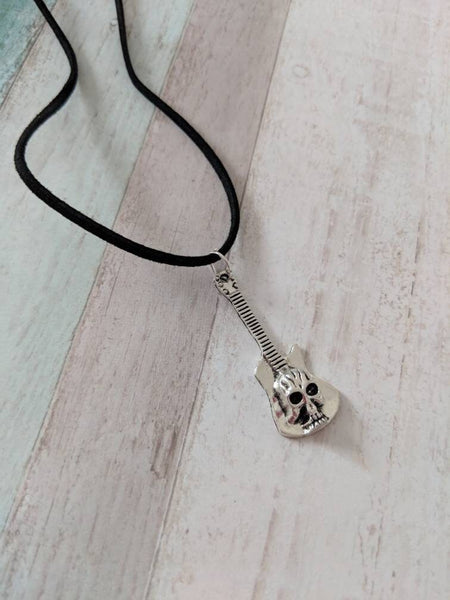 Skull necklace, gifts for him, guitar necklace, punk necklace, punk jewelry, gothic necklace, gothic jewellery, gifts for her, teen gifts