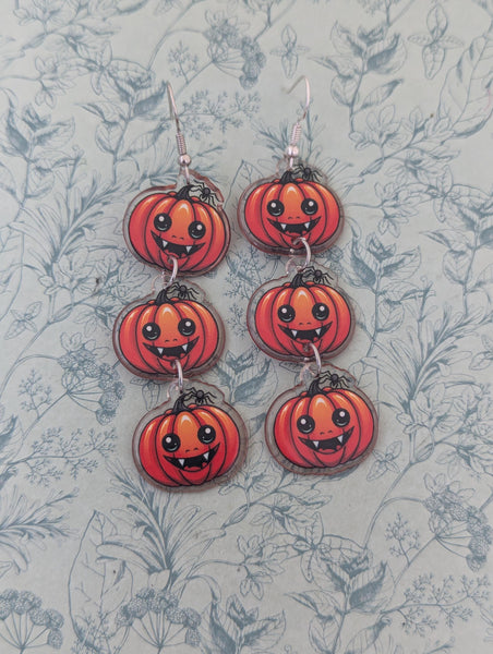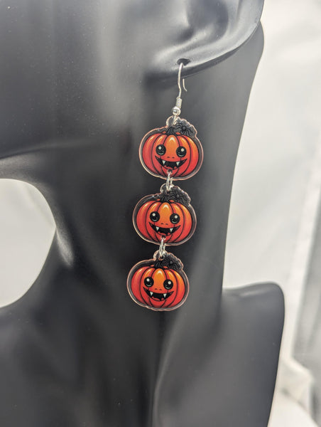 Spooky pumpkin earrings, long dangling Halloween earrings, Halloween jewelry, pumpkin inspired gifts, autumn Halloween accessories,