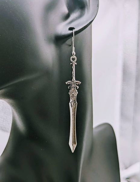 Sword earrings, statement earrings, sword themed jewellery, gamer geek gifts, gothic earrings, gothic jewelry, dagger earrings, witchy gifts