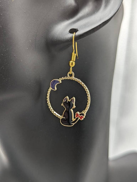 Witch earrings, black cat earrings, witchy gifts, Halloween earrings, Halloween jewelry, little witch, celestial earrings, bat earrings,