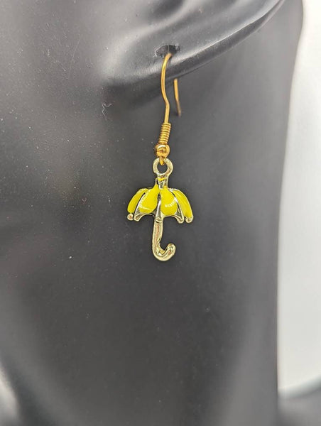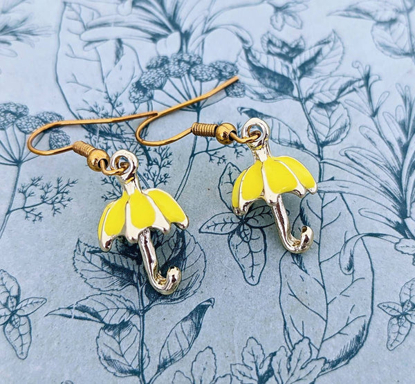 Yellow umbrella earrings, cute earrings, novelty earrings, novelty jewelry, cute kawaii jewelry, girl accessories, weather girl gifts